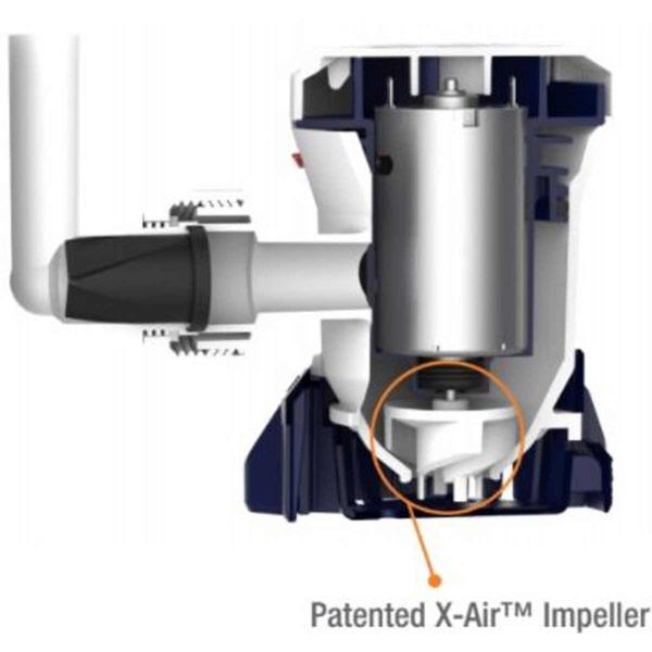 The patented X-Air Impeller Technology is engineered to force trapped air bubbles out of the hose and pump's underside, preventing dry running and potential damage.
