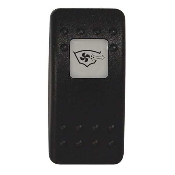 Carling actuator with 'Bilge Blower' icon on a white square lens, suitable for use with Contura ii switches. The Carling switch cover is made of hard black plastic.