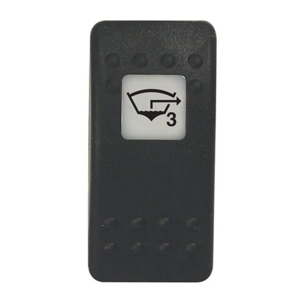 Carling actuator with 'Bilge Pump 3' icon on a white square lens, suitable for use with Contura ii switches. The Carling switch cover is made of soft black plastic.