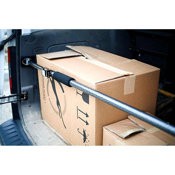 An extending cargo bar with soft grip handle designed for securing heavy loads in place safely during transit. The cargo bar is GS approved for use to support loads up to 60kg.