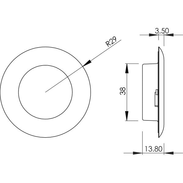 | Diameter Description | Overall: 58mm, Cut Out Hole: 38mm |