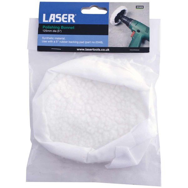 Soft polishing mop cover for smooth finishes, ideal for polishing paintwork and suitable for use with standard power tools. This polishing bonnet features a simple tie on fixing and measures 125mm (5") in diameter.