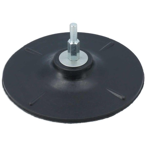 Flexible rubber backing pad with 6mm arbour, suitable for use with standard power tools (such as LT-8011), sanding discs and polishing mops. This backing pad measures 125mm (5") in diameter.